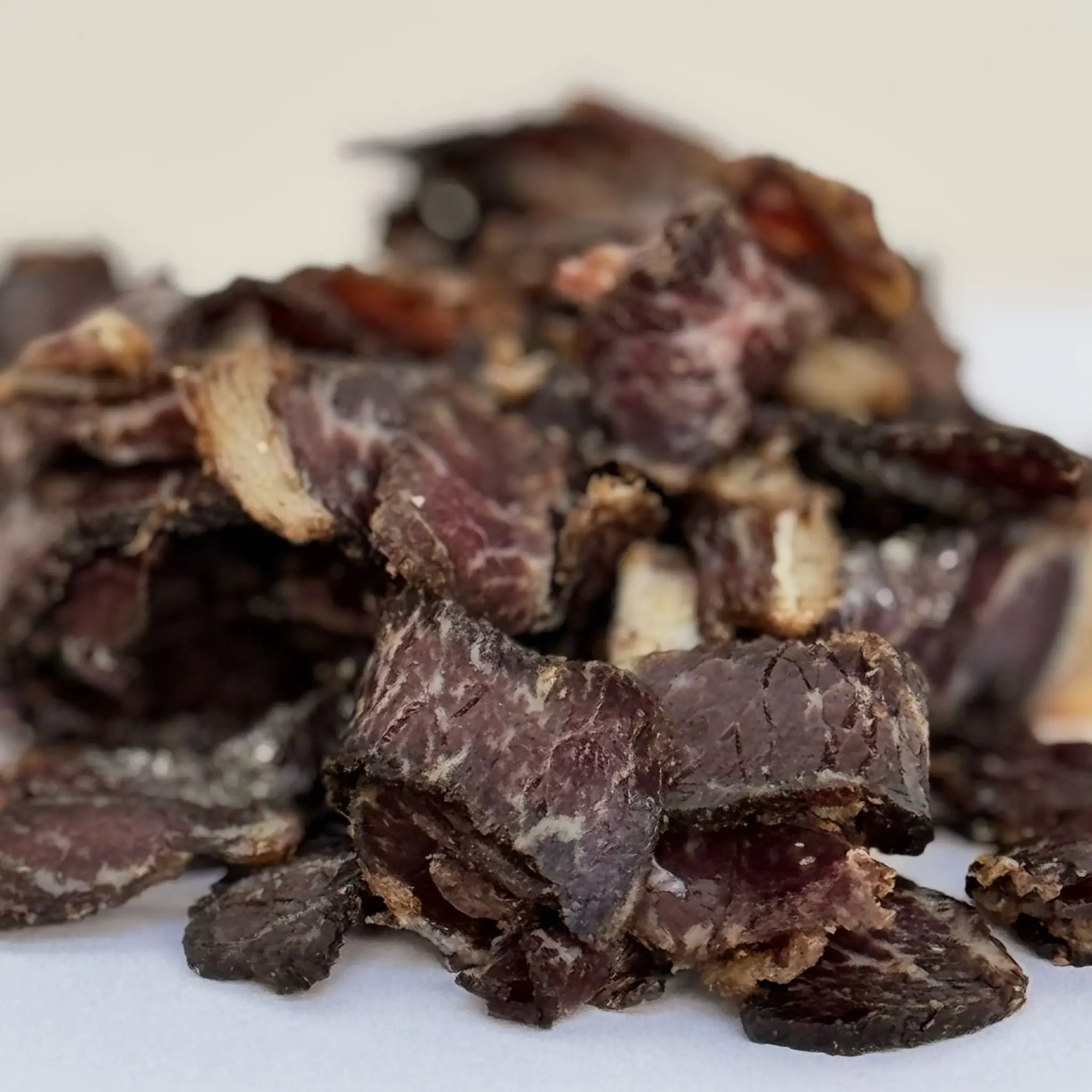 Tasty Biltong Sticks Vacuum sealed or in a perforated bag.